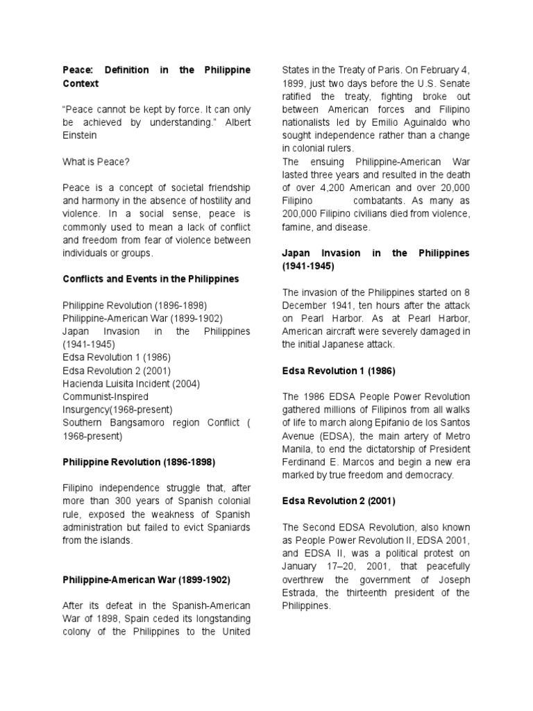 Peace Definition in The Philippine Context PDF Philippines